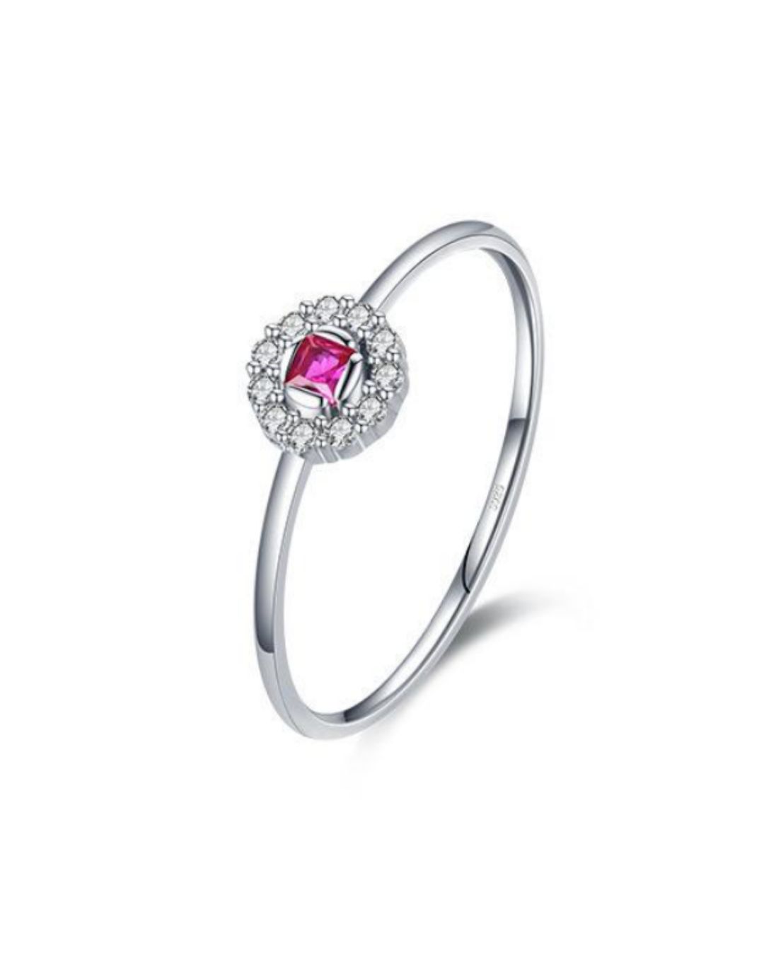 Anillo de plata esterlina con zirconias y baño de rodio. El modelo Madeleine tiene una argolla delgada y fina que estiliza y favorece.